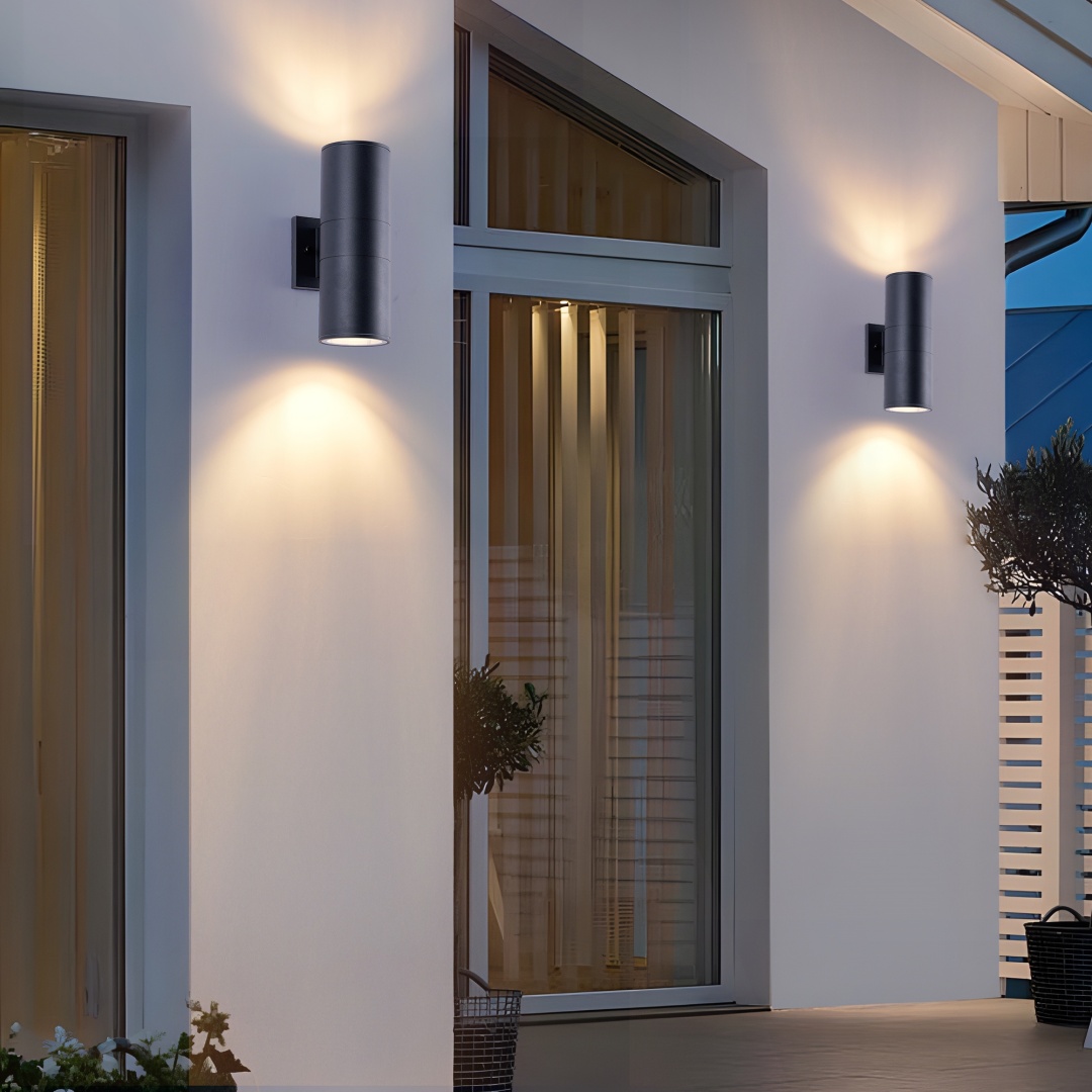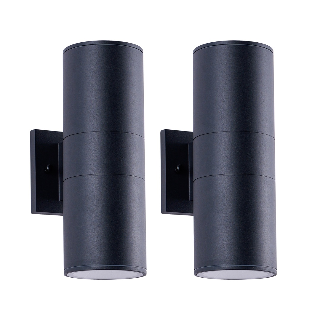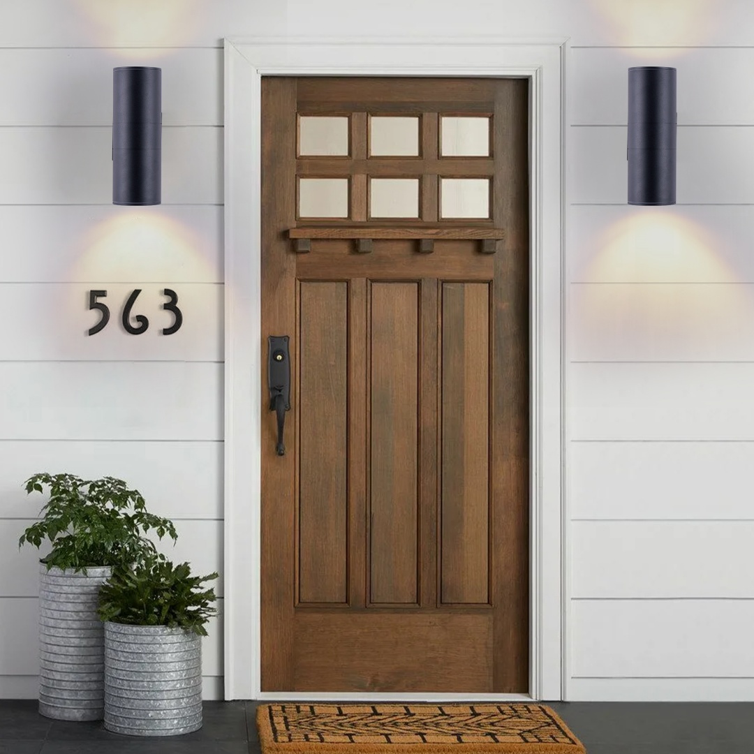 IP65 rated outdoor wall sconce, rust-resistant with aluminum cylinder body, bulbs NOT included.Patented waterproof design with cap shape upper cover and plug shape lower cover.Easy to install with 2-piece rotatable mounting bracket and fixing nuts on wall plate front side.WATERPROOF, RUST-RESISTANT AND WEATHER-RESISTANT - The tough aluminium body and glass end diffusers ensure the fixture is able to withstand all weather condition.Light is dispersed from both ends of the fitting creating a beautiful lighting effect and is suitable for indoor & outdoor use