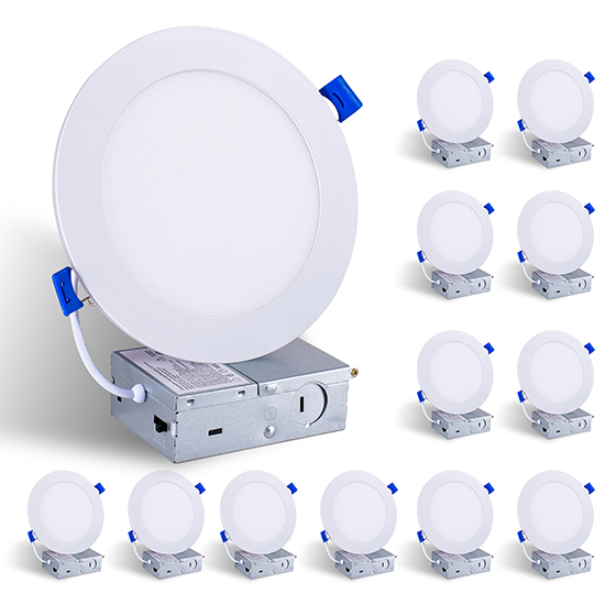 Home > 12 Pack 6 Inch White LED Recessed Ceiling Light, Dimmable, 2700K-5000K 5CCT, 1200LM 12W 120V, High Brightness Canless Wafer Downlight