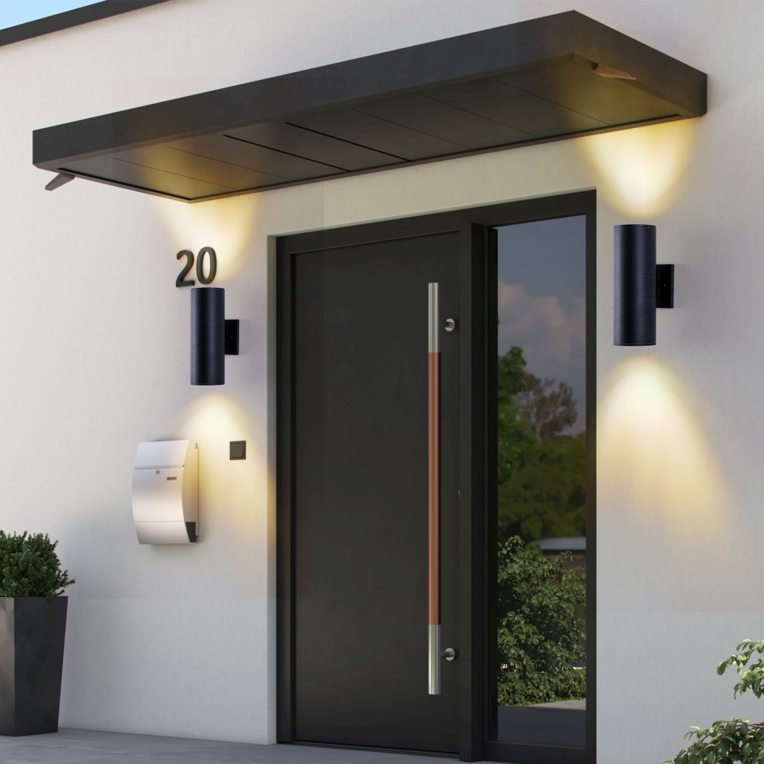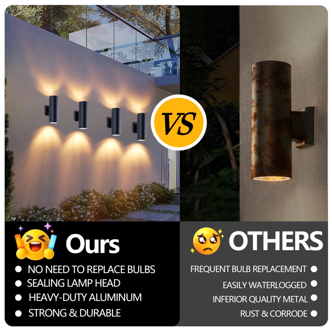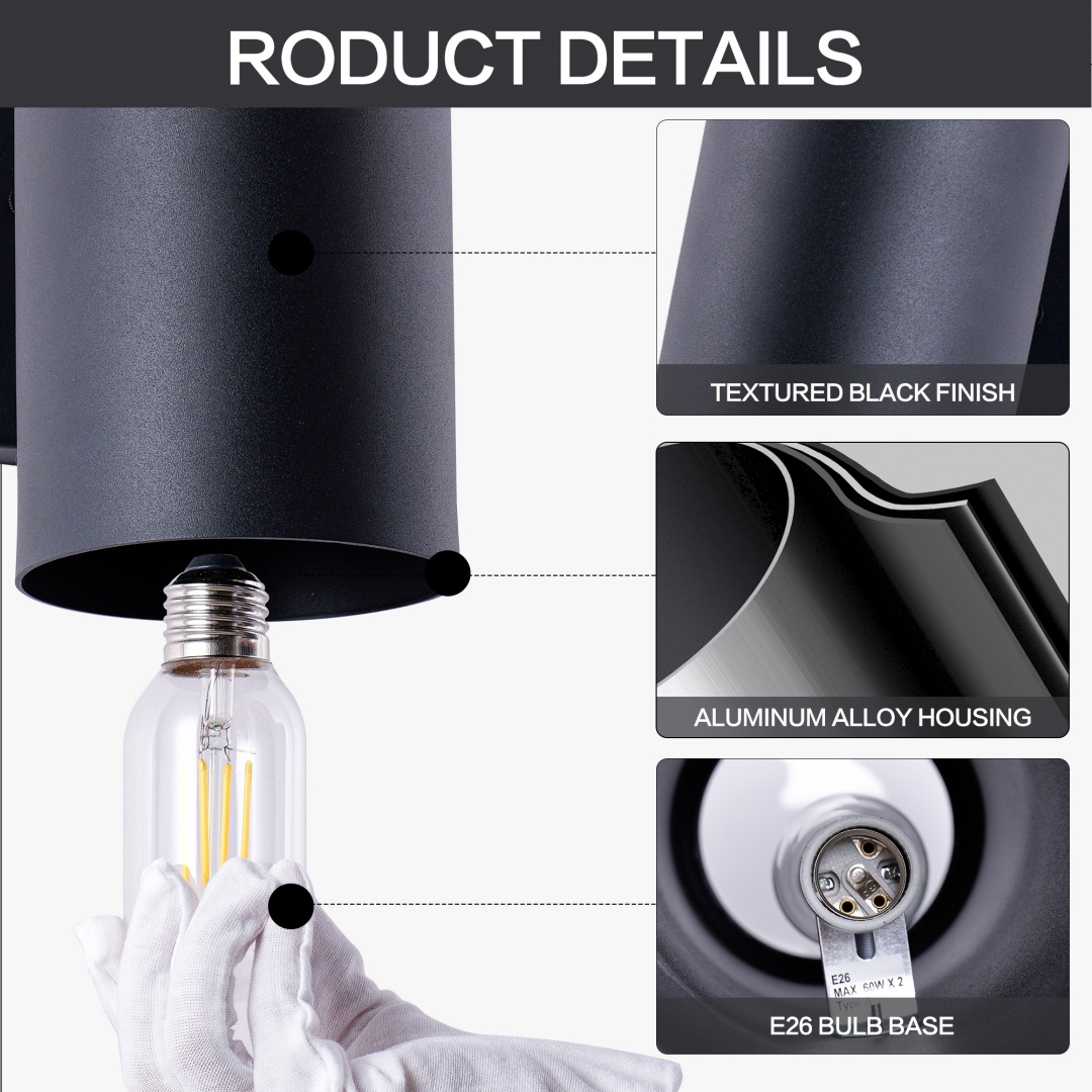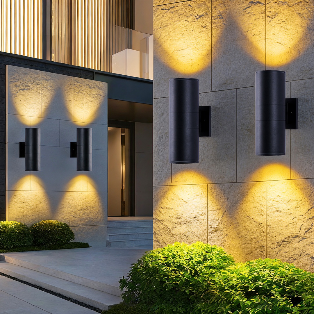 Up and Down Lighting Design - The outdoor light fixture features a unique top and bottom lighting design that provides ample light and creates a clean and modern look. Experience the perfect balance of style and functionality that complements any outdoor space.Built Tough for the Long Haul - Made with high quality aluminum material and tempered glass panels, these porch lights wall mount are weather-resistant and built to last. The matte black painted finish adds a sleek touch to your house, and the IP65 waterproof rating ensures the fixture can withstand rain, snow, and other harsh weather conditions.Modern Stylish - The up and down wall sconces are designed in a cylinder shape with clean lines and minimalist style for the modern home. The E26 bulb socket supports up to 60W maximum (bulb not included).Easy to Install - This outdoor wall sconce comes packaged with the required mounting accessories, the flush mounted design makes it easy to install, so you can install it in just 3 steps. The input voltage of 110-120V ensures that lights are compatible with most electrical systems.
