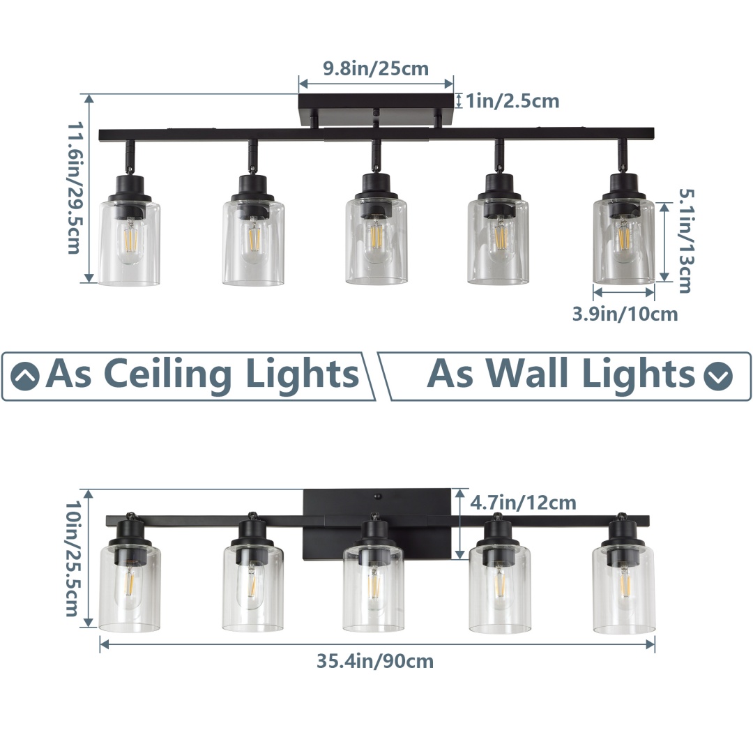 MODERN FARMHOUSE DESIGN : This bathroom light fixture with a unique take on comfort and simplicity, modernizes the farmhouse trend with a warm finish and modern industrial elements with a rustic design that brings understated elegance to your industrial, vintage and traditional décor. It's functional design to offer a unique lighting kit that illuminates your home with trendy modern industrial flair.Adjustable Track Heads : Multi-directional adjustable track heads allow you to use this track light where you need it most in a variety of different ways providing the perfect interior lighting ambiance for your every moment and every room.Bulb Type : E26 Socket,60W Max. This track lighting ceiling fixture Compatible with LED, Incandescent and Halogen Bulbs(Bulb is not Including) It is fully dimmable with a compatible dimmer switch to create the perfect atmosphere.EASY INSTALL : includes all mounting hardware for quick and easy installation.It can be installed on a sloped or vaulted ceiling. Also could be ceiling or wall mounted ,you can use it on your ceiling as a traditional track light or use it on wall as a trendy vanity light.