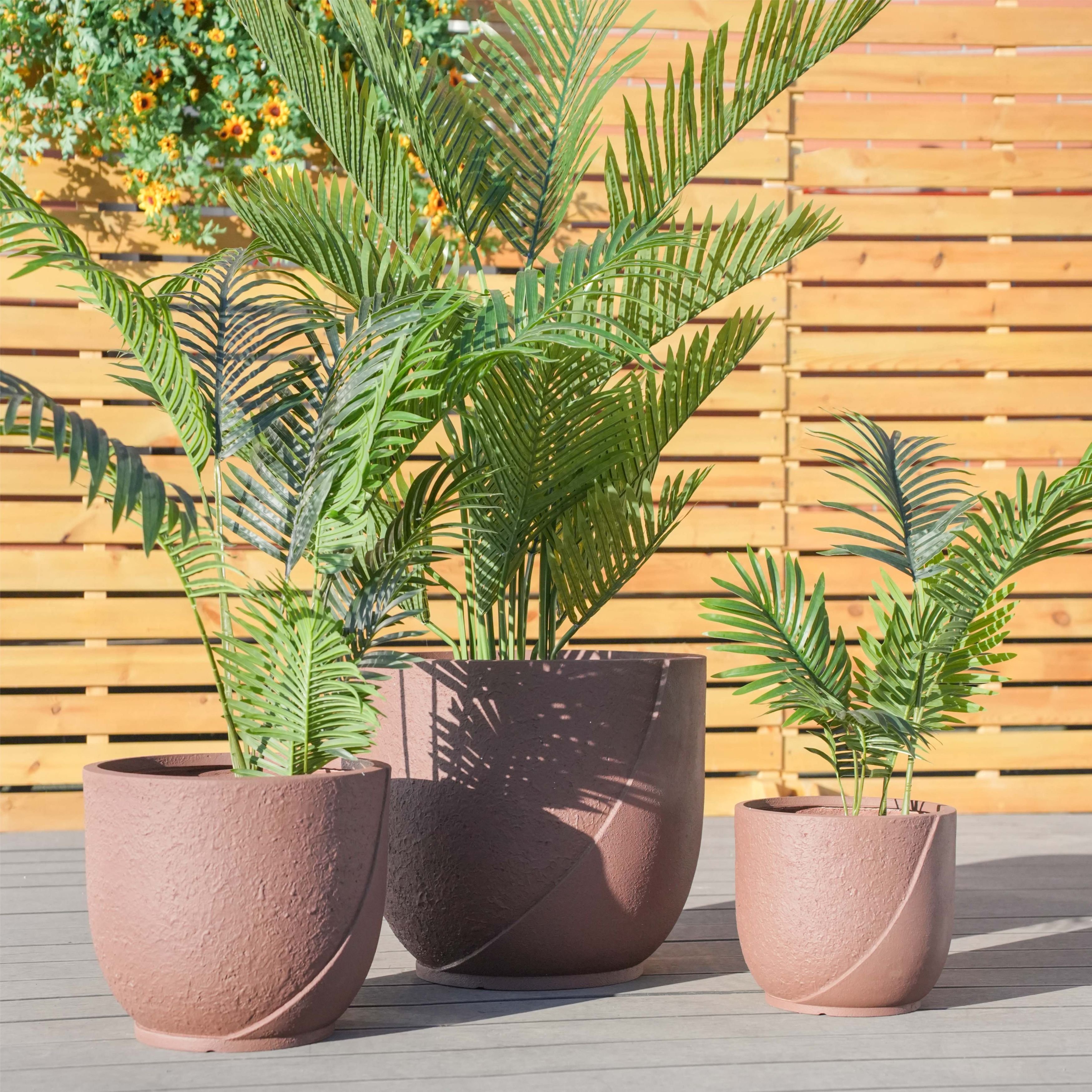 Enhance your outdoor space with this set of garden planters, designed with a sophisticated cement-effect pattern. These planters are crafted from a durable blend of magnesium oxide (90%) and resin fiber (10%), ensuring they are both sturdy and stylish. Each planter comes with a drainage hole, making them perfect for a variety of plants. The set includes three different sizes, allowing you to create a cohesive and attractive arrangement in your garden or patio.