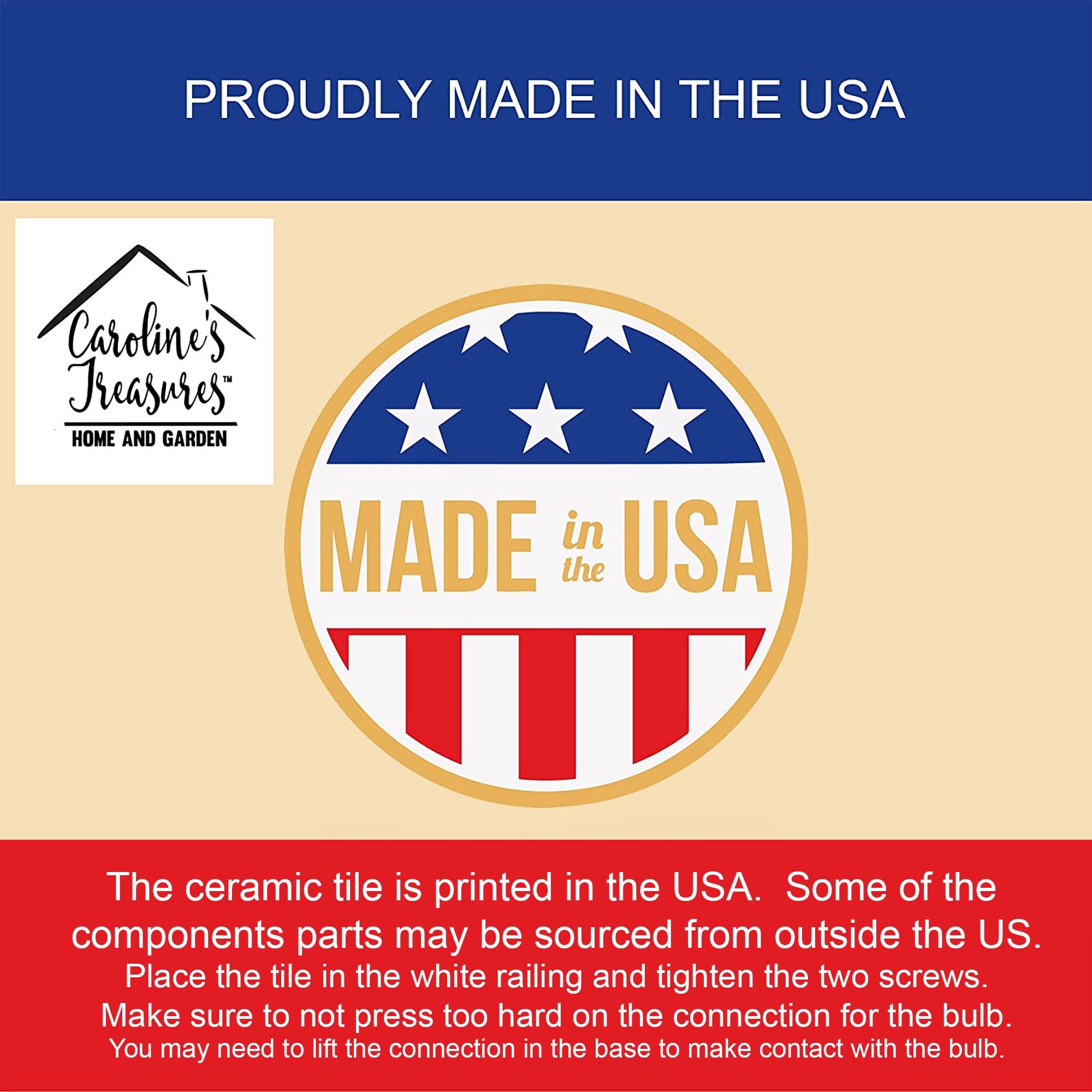 Ceramic Night Light featuring breed specific Burrowing Owl artwork. Introduce a splash of artistic flair and subtle illumination to your space with the Decorative Ceramic Night Light from Caroline's Treasures. Perfect for any room, this night light seamlessly blends functionality with an aesthetic appeal, offering a stylish solution to brighten up dark corners of your home or office. Boasting a six-inch high by four-inch wide ceramic tile at the front, it showcases vivid, full-color artwork from distinguished artists, transforming a simple utility into a vibrant art piece. The artwork is securely encased in a robust metal holder, ensuring durability and longevity. Two screws are provided to firmly affix the tile into the holder. The holder extends three inches deep, housing an included bulb that emits a soft, welcoming glow. This product meets all safety standards, as evidenced by its UL approval. Proudly made in the United States from imported components, this Decorative Ceramic Night Light is not just a functional device; it's a statement piece that enhances the ambiance of your surroundings.