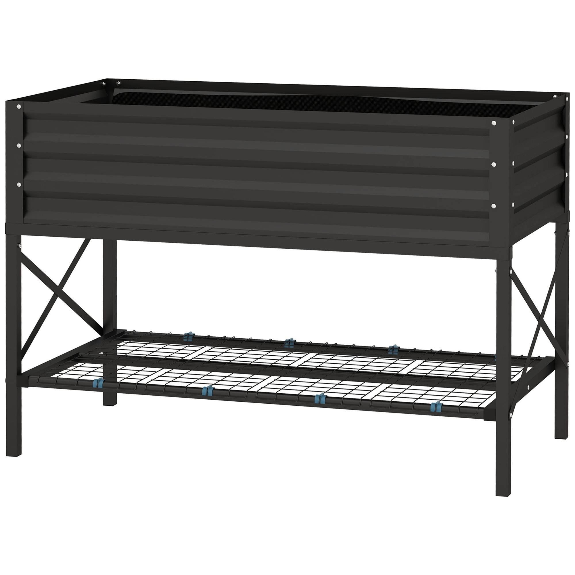 Home > Outsunny Black Galvanized Raised Bed: Elevated Planter with Shelf, Liner Included for Outdoor Gardening|