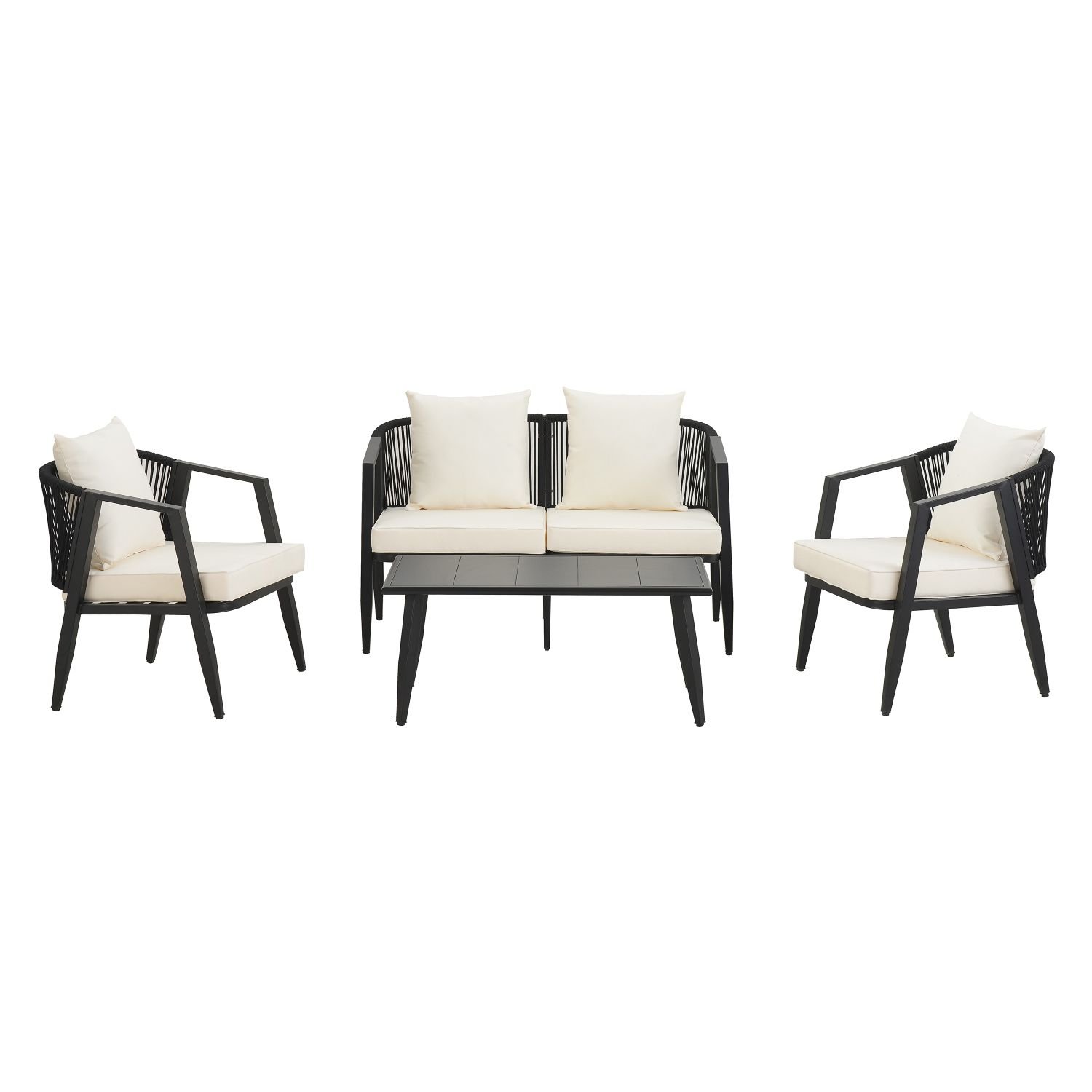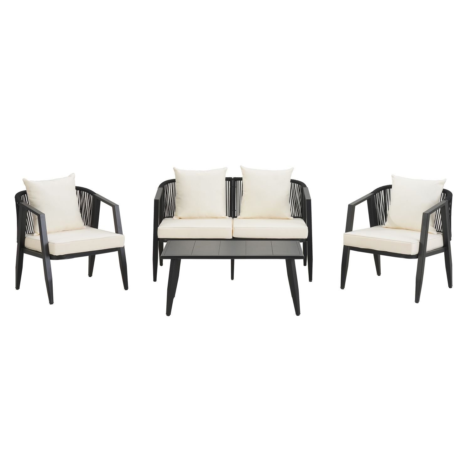 [Sturdy Iron Frame]:This outdoor seating set features durable iron frames, ensuring long-lasting strength and stability. The robust construction makes it ideal for use in a variety of outdoor settings, including gardens, lawns, and poolside areas.