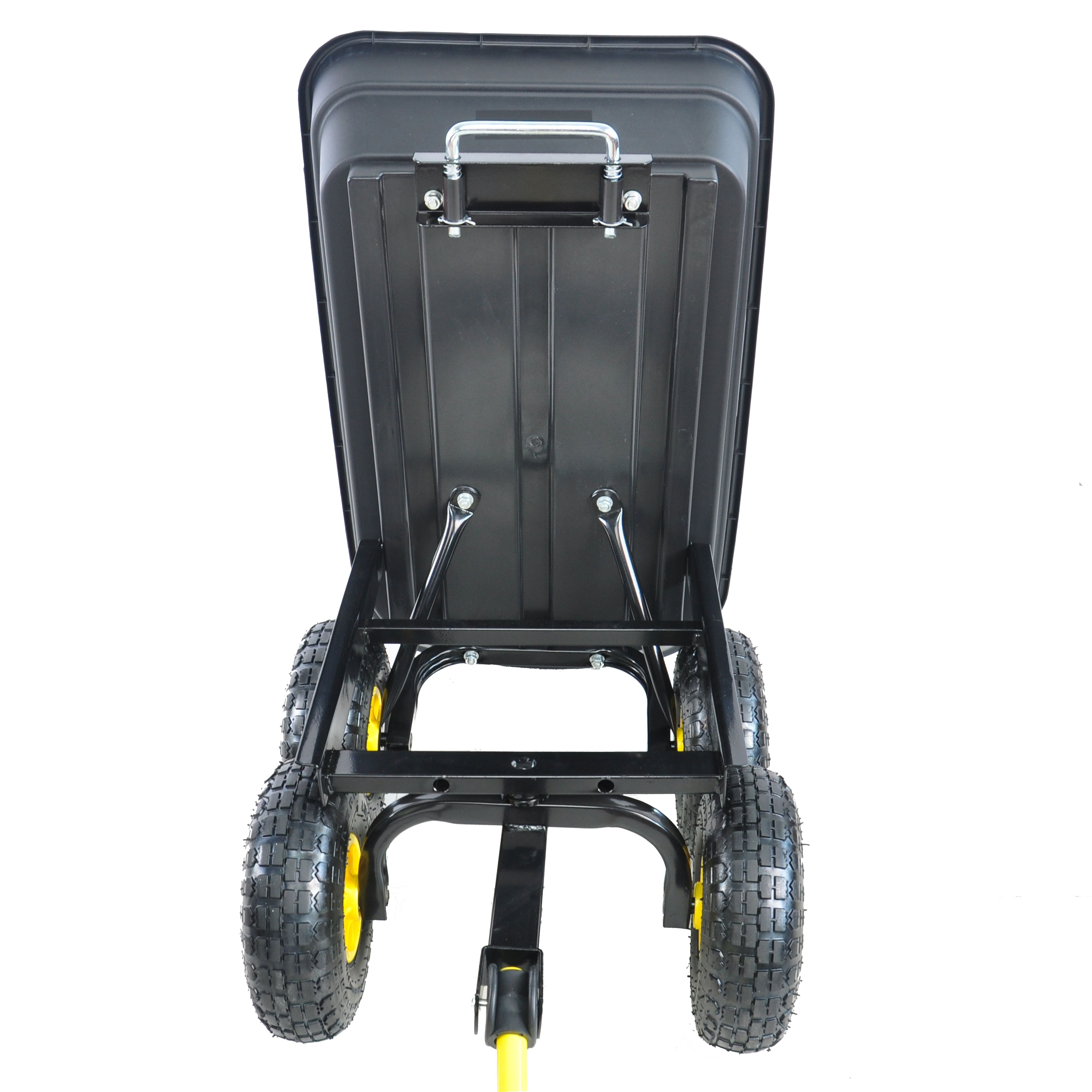 [180 Degree Turn] Garden Dump Cart handle has a 180 degree turn range that makes transportation quick and easy. It is long and flexible enough to adjust angle as needed.