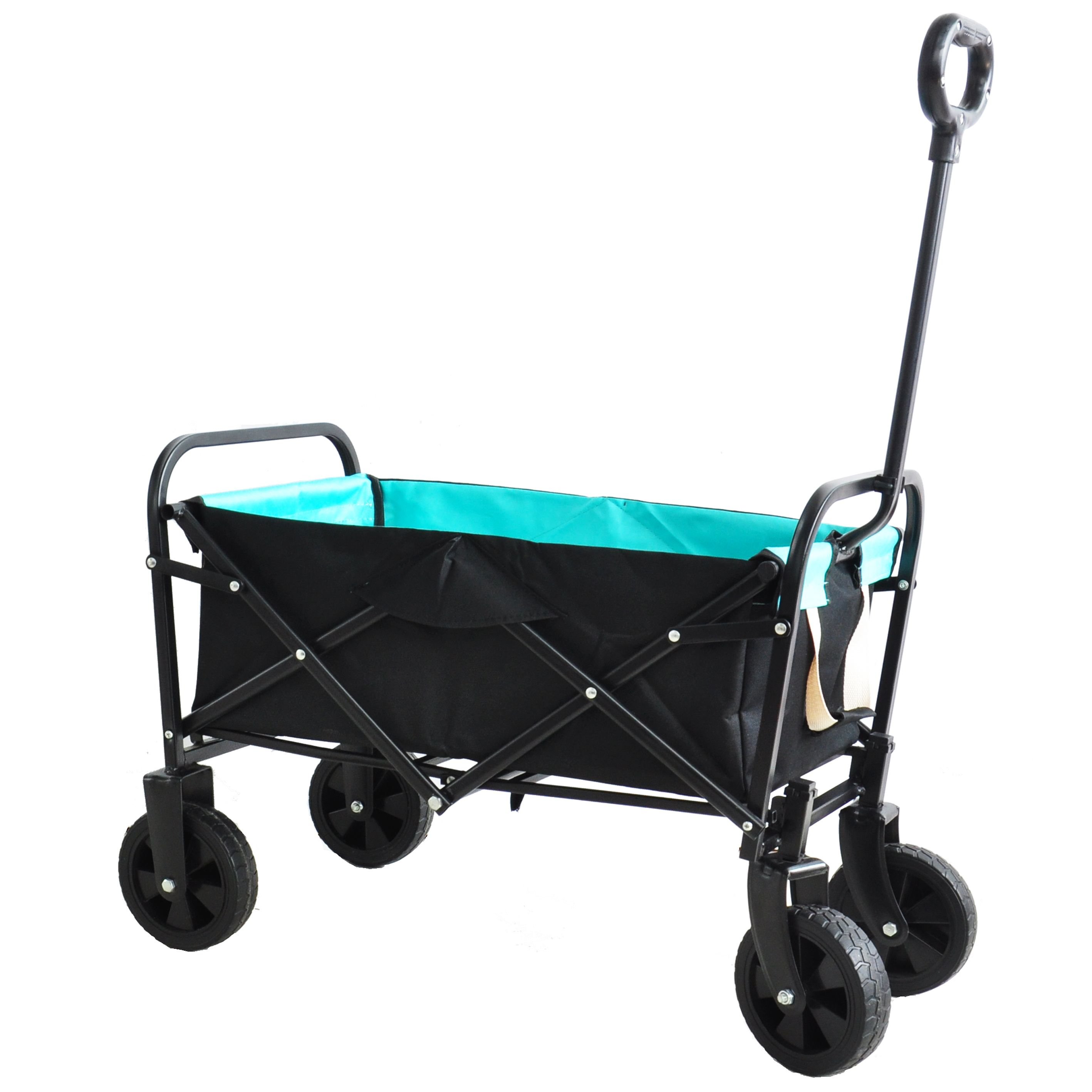 [Lots of Room]The outdoor utility wagon features the biggest bang for your buck. This large interior measures out to a capacity of22" x 13" x 8.66". The utility wagon also folds out to its full size in a matter of seconds with no assembly required.[Heavy Duty]The wagon was built to last. The wagon is built using durable 600 Denier fabric. The heavy duty frame allows you to carry up to 150 pounds of gear with ease. Think of all the trips to and from the car you will save.[Functional Features]All utility wagons come with an adjustable handle for effortless transport across multiple surfaces (pavement; grass; etc.)[HIGH QUALITY]The utility wagon cart is made of strong steel and iron frame; fixed handle is firm and practical; rubber wheel is suitable for hard road and beach. Durable and waterproof 600D Oxford cloth is easy to clean and has a long service life.[WIDE RANGE APPLICATIONS]Folding utility wagons are used in a wide range of applications; such as outdoor activities; beaches; gardens; parks; camping or shopping to make your life more convenient.