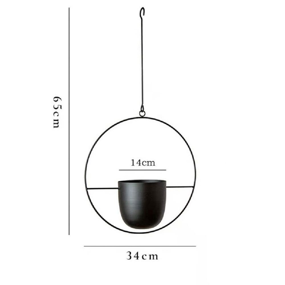 Iron with black finishing-chain hanger and hook withstands the elements while providing secure support.Adding some modern accent and charm to your space with this special modern plant holder.